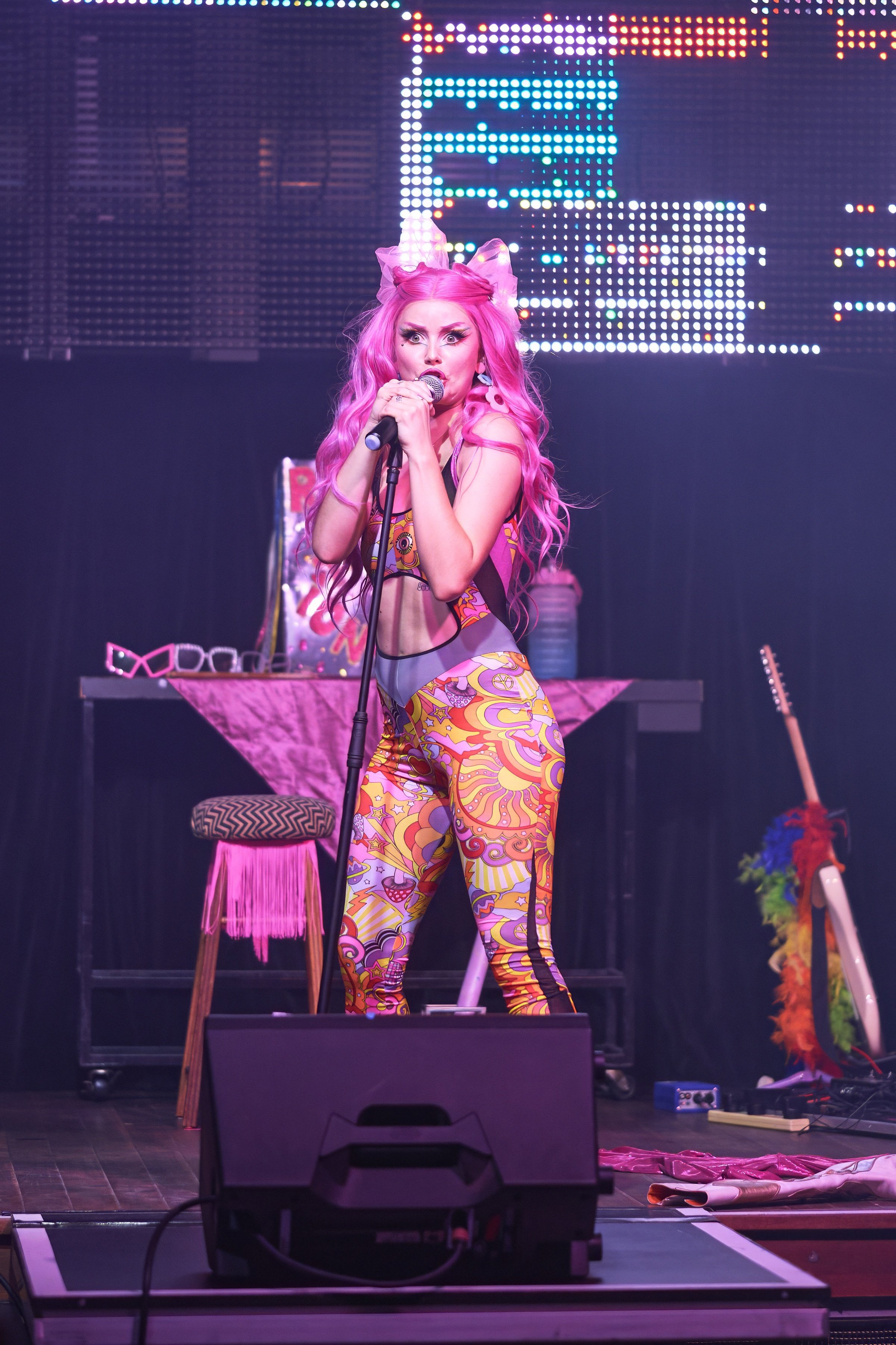 The Realtime Show with Amber Scates is a bold, high-energy cabaret talk show that blends live music, comedy, audience interaction, and on-the-spot improvisation. Each show is unique — the audience influences what happens through interactive elements, and a giant spinning wheel of revelations. Think a fabulous mix of Cher Show glamour, game-show chaos, and heartfelt storytelling, all rooted in connection, living in the present moment, and reminding the audience of who they truly are.